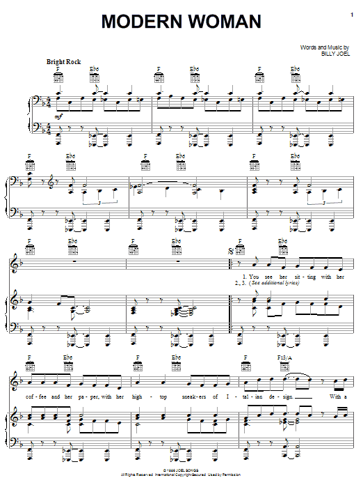 Download or print Billy Joel Modern Woman sheet music, chords and digital score arranged for Piano, Vocal & Guitar Chords (Right-Hand Melody). This Pop score includes 5 page(s).