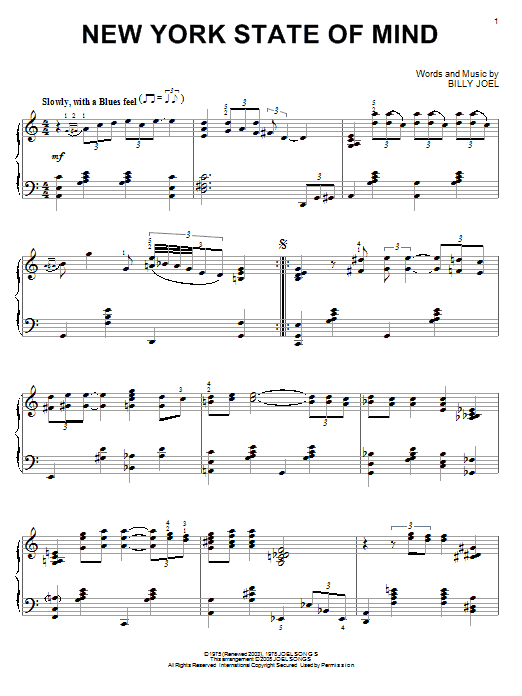Download or print Billy Joel New York State Of Mind [Jazz version] (arr. Brent Edstrom) sheet music, chords and digital score arranged for Piano Solo. This Jazz score includes 4 page(s).