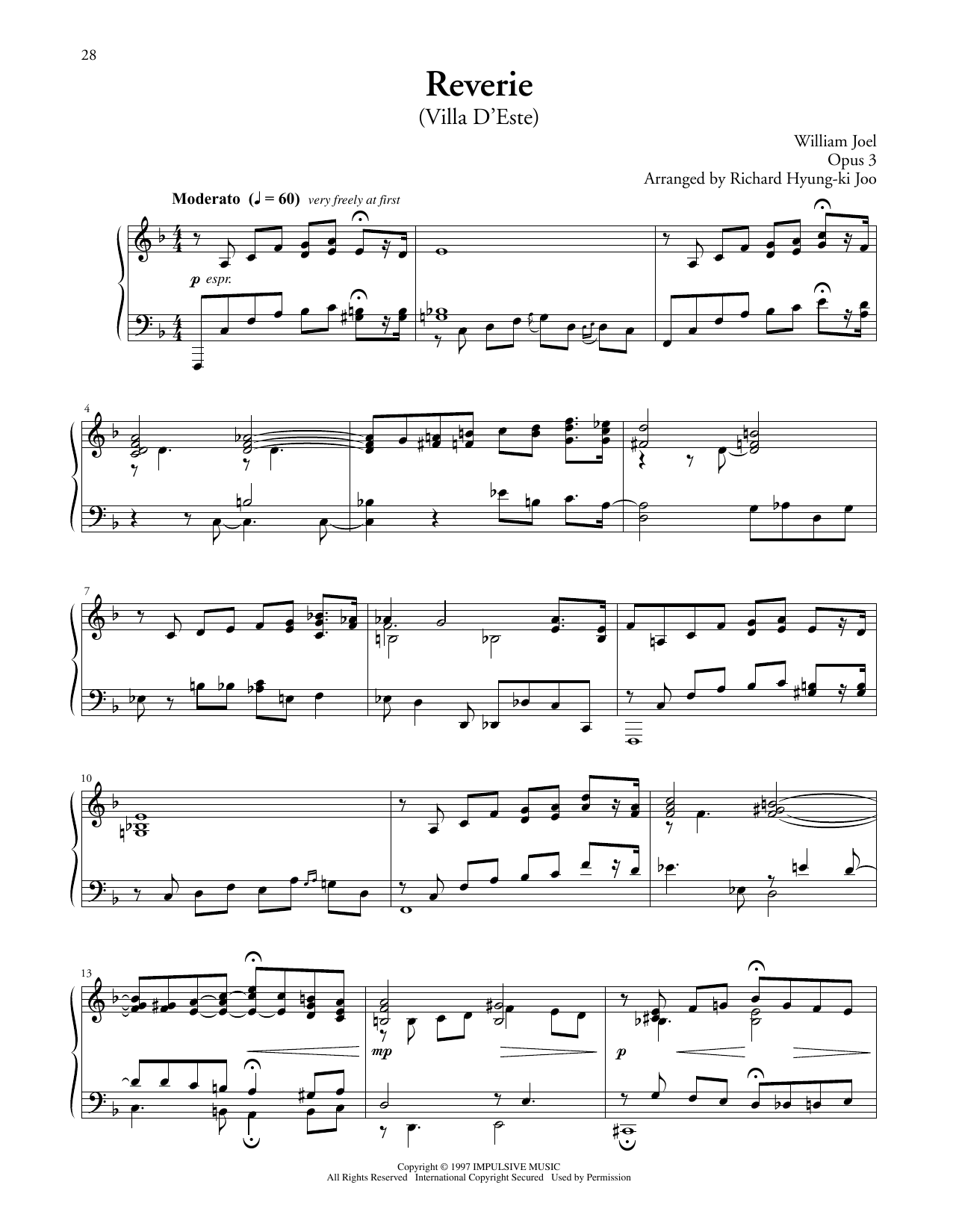 Download or print Billy Joel Reverie (Villa D'este) sheet music, chords and digital score arranged for Piano Solo. This Pop score includes 10 page(s).
