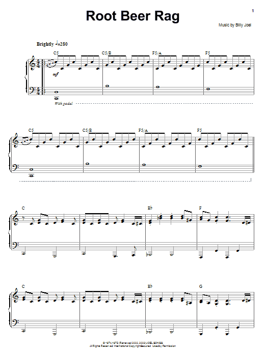 Download or print Billy Joel Root Beer Rag sheet music, chords and digital score arranged for Piano Solo. This Pop score includes 9 page(s).