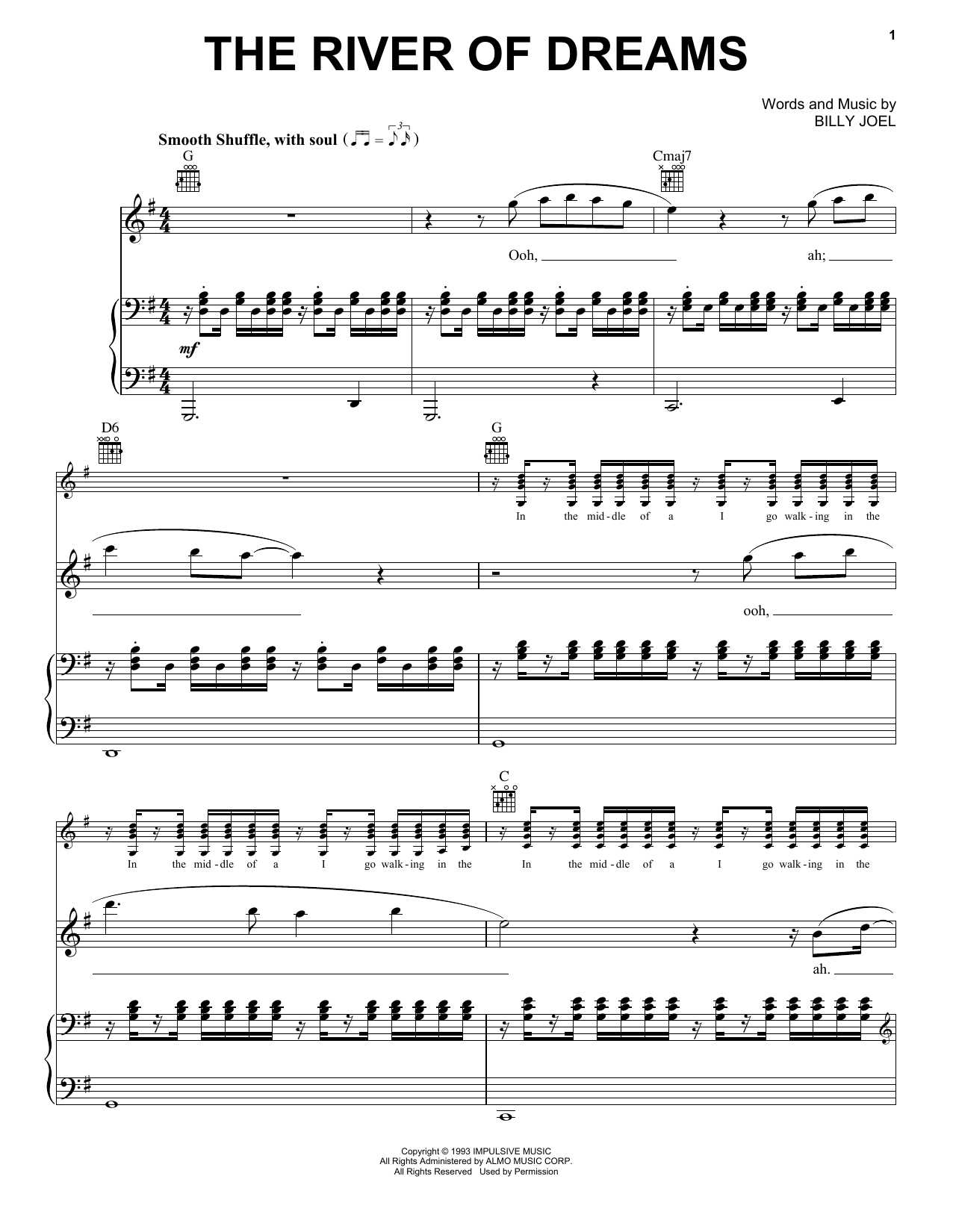 Download or print Billy Joel The River Of Dreams sheet music, chords and digital score arranged for Keyboard Transcription. This Pop score includes 17 page(s).