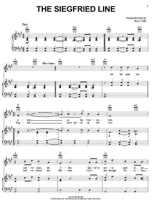 Download or print Billy Joel The Siegfried Line sheet music, chords and digital score arranged for Piano, Vocal & Guitar Chords (Right-Hand Melody). This Pop score includes 7 page(s).