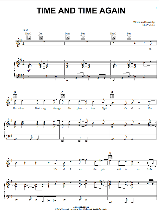 Download or print Billy Joel Time And Time Again sheet music, chords and digital score arranged for Piano, Vocal & Guitar Chords (Right-Hand Melody). This Pop score includes 4 page(s).