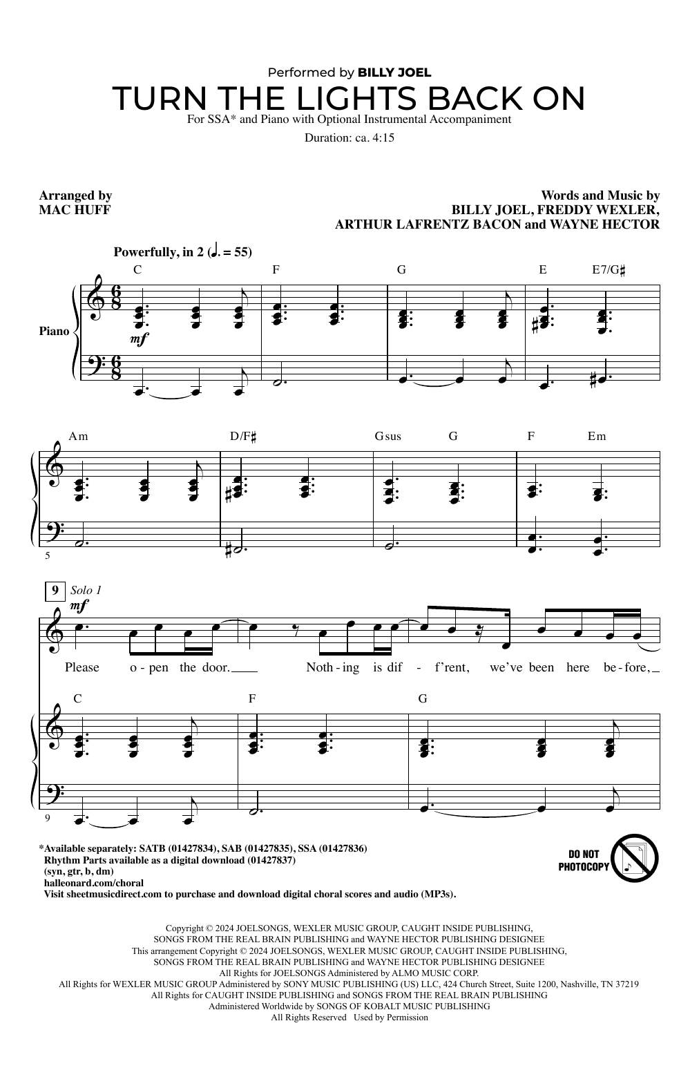 Download or print Billy Joel Turn The Lights Back On (arr. Mac Huff) sheet music, chords and digital score arranged for SSA Choir. This Pop score includes 11 page(s).