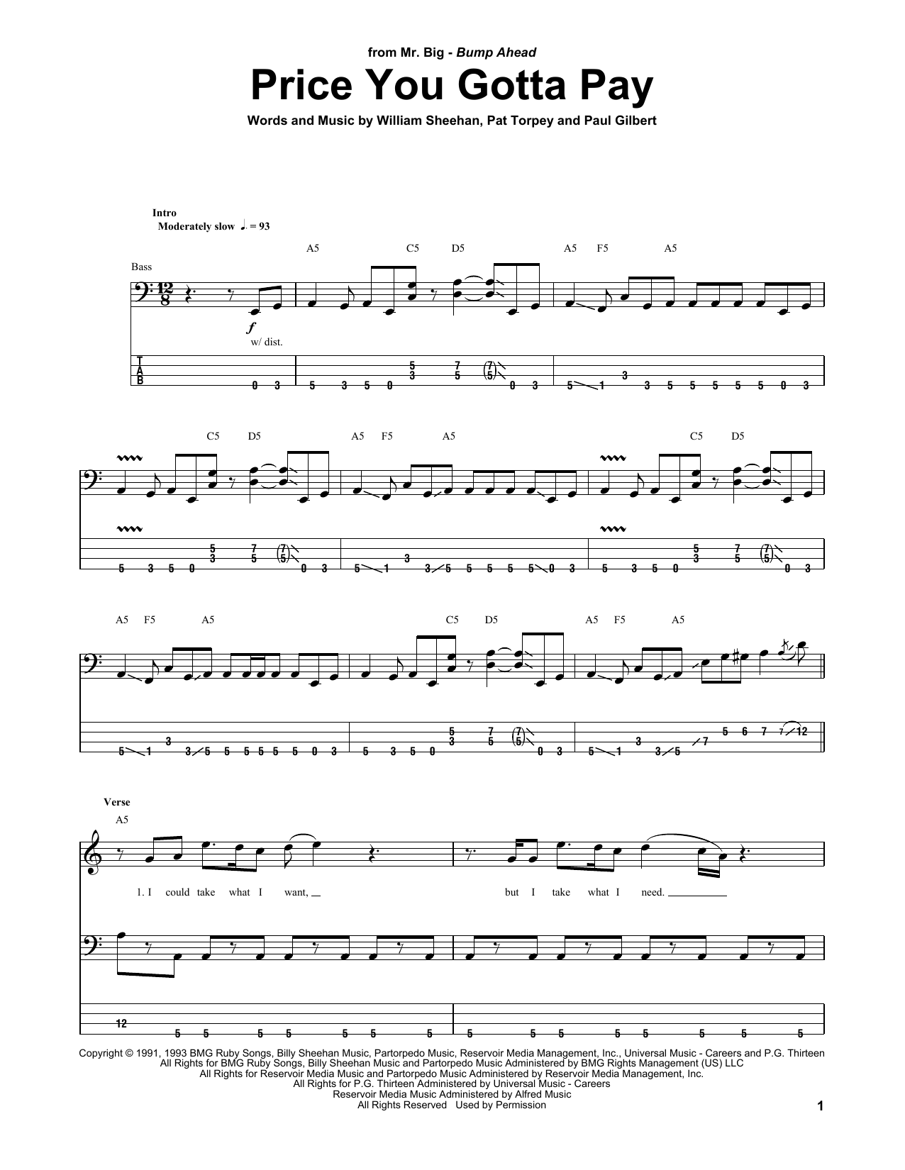 Download or print Billy Sheehan Price You Gotta Pay sheet music, chords and digital score arranged for Bass Guitar Tab. This Pop score includes 10 page(s).