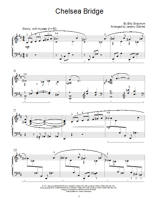 Download or print Billy Strayhorn Chelsea Bridge sheet music, chords and digital score arranged for Educational Piano. This Jazz score includes 3 page(s).