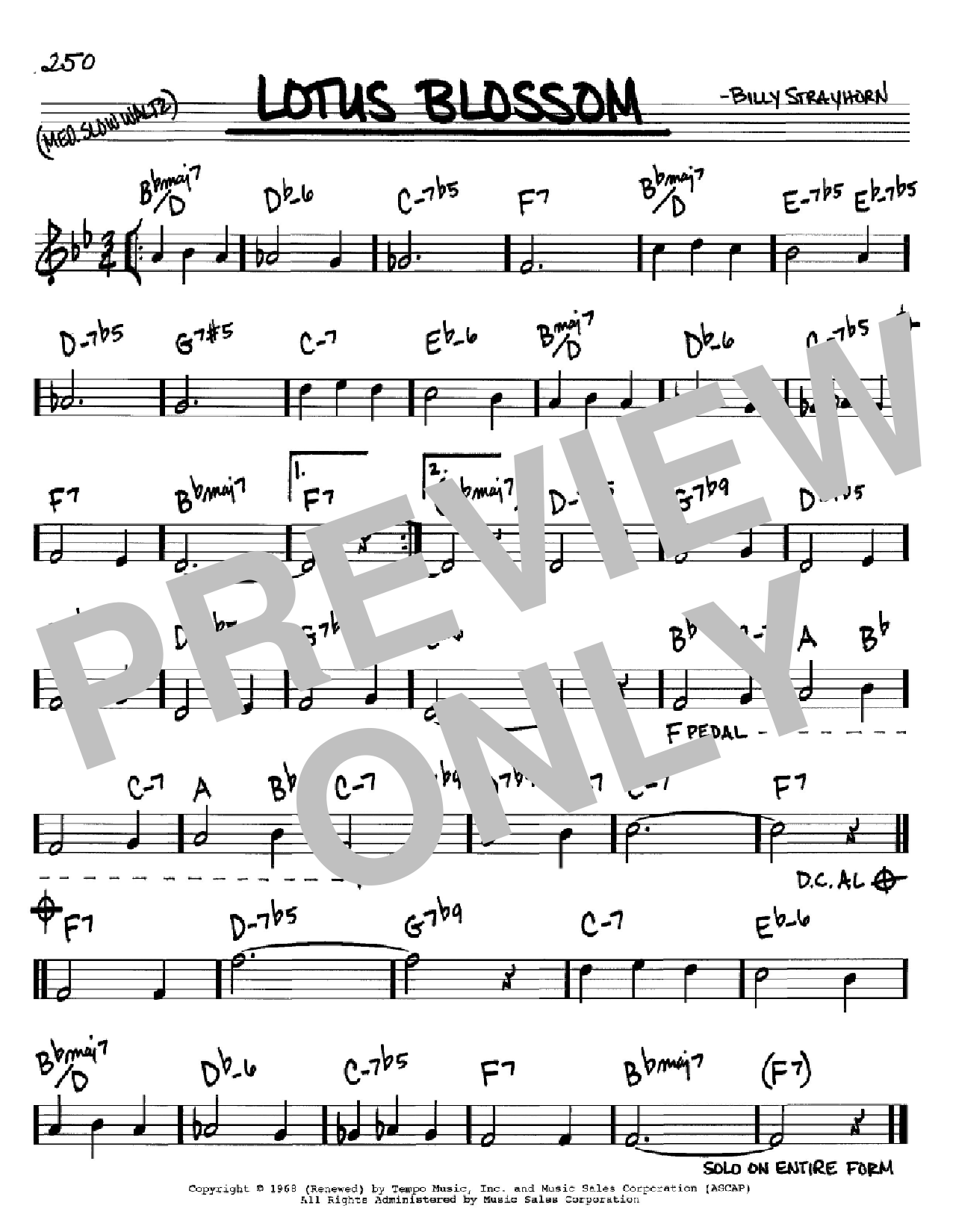 Download or print Billy Strayhorn Lotus Blossom sheet music, chords and digital score arranged for Real Book – Melody & Chords – C Instruments. This Jazz score includes 1 page(s).