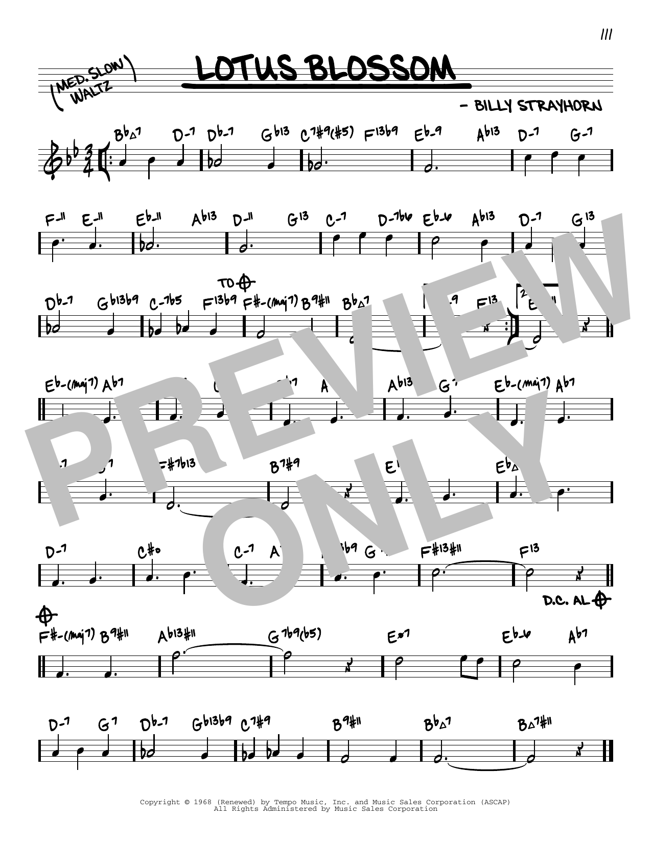 Download or print Billy Strayhorn Lotus Blossom (arr. David Hazeltine) sheet music, chords and digital score arranged for Real Book – Enhanced Chords. This Jazz score includes 1 page(s).