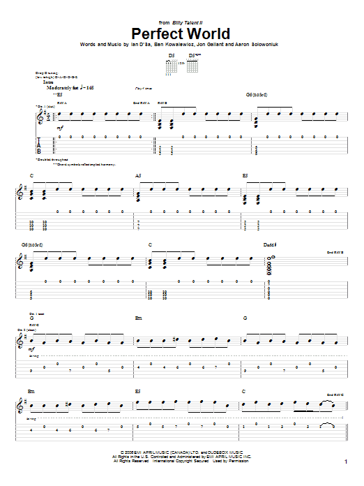 Download or print Billy Talent Perfect World sheet music, chords and digital score arranged for Guitar Tab. This Pop score includes 5 page(s).