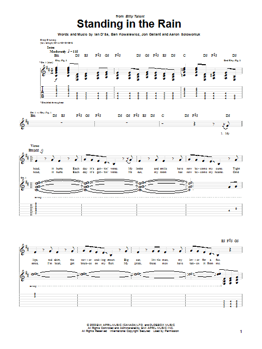 Download or print Billy Talent Standing In The Rain sheet music, chords and digital score arranged for Guitar Tab. This Punk score includes 4 page(s).