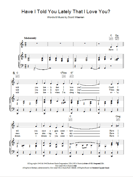 Download or print Bing Crosby Have I Told You Lately That I Love You? sheet music, chords and digital score arranged for Piano, Vocal & Guitar Chords. This Standards score includes 3 page(s).