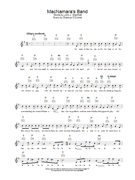 Download or print Bing Crosby MacNamara's Band sheet music, chords and digital score arranged for Lead Sheet / Fake Book. This Traditional score includes 2 page(s).