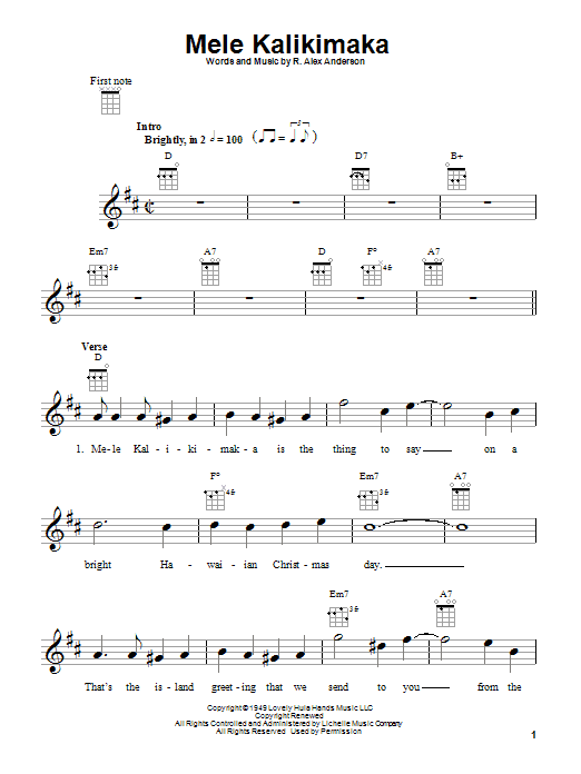 Download or print Bing Crosby Mele Kalikimaka sheet music, chords and digital score arranged for Trumpet Solo. This Christmas score includes 1 page(s).