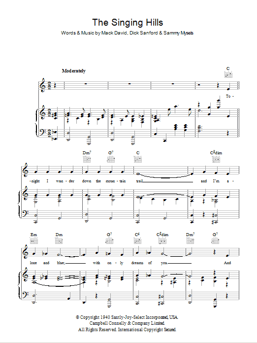 Download or print Bing Crosby The Singing Hills sheet music, chords and digital score arranged for Piano, Vocal & Guitar Chords. This Standards score includes 4 page(s).