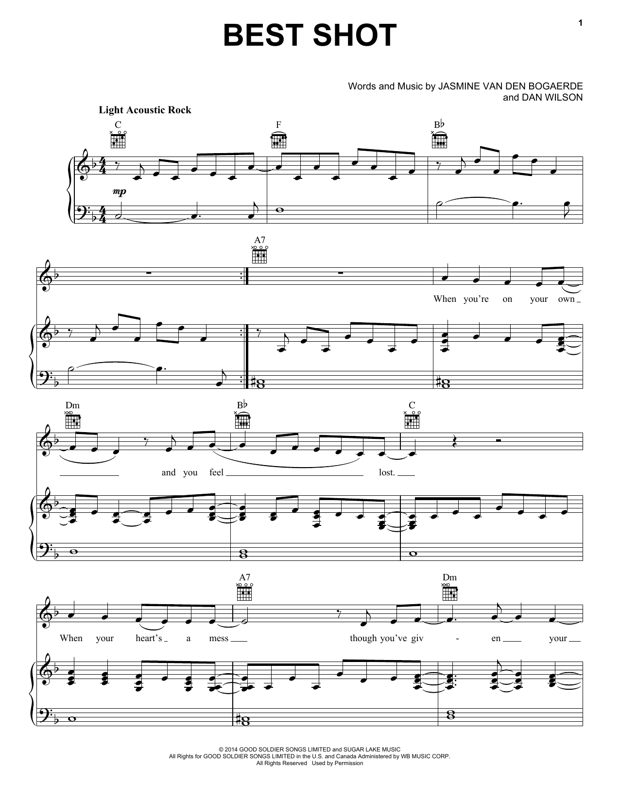 Download or print Birdy & Jaymes Young Best Shot sheet music, chords and digital score arranged for Piano, Vocal & Guitar Chords (Right-Hand Melody). This Film/TV score includes 6 page(s).
