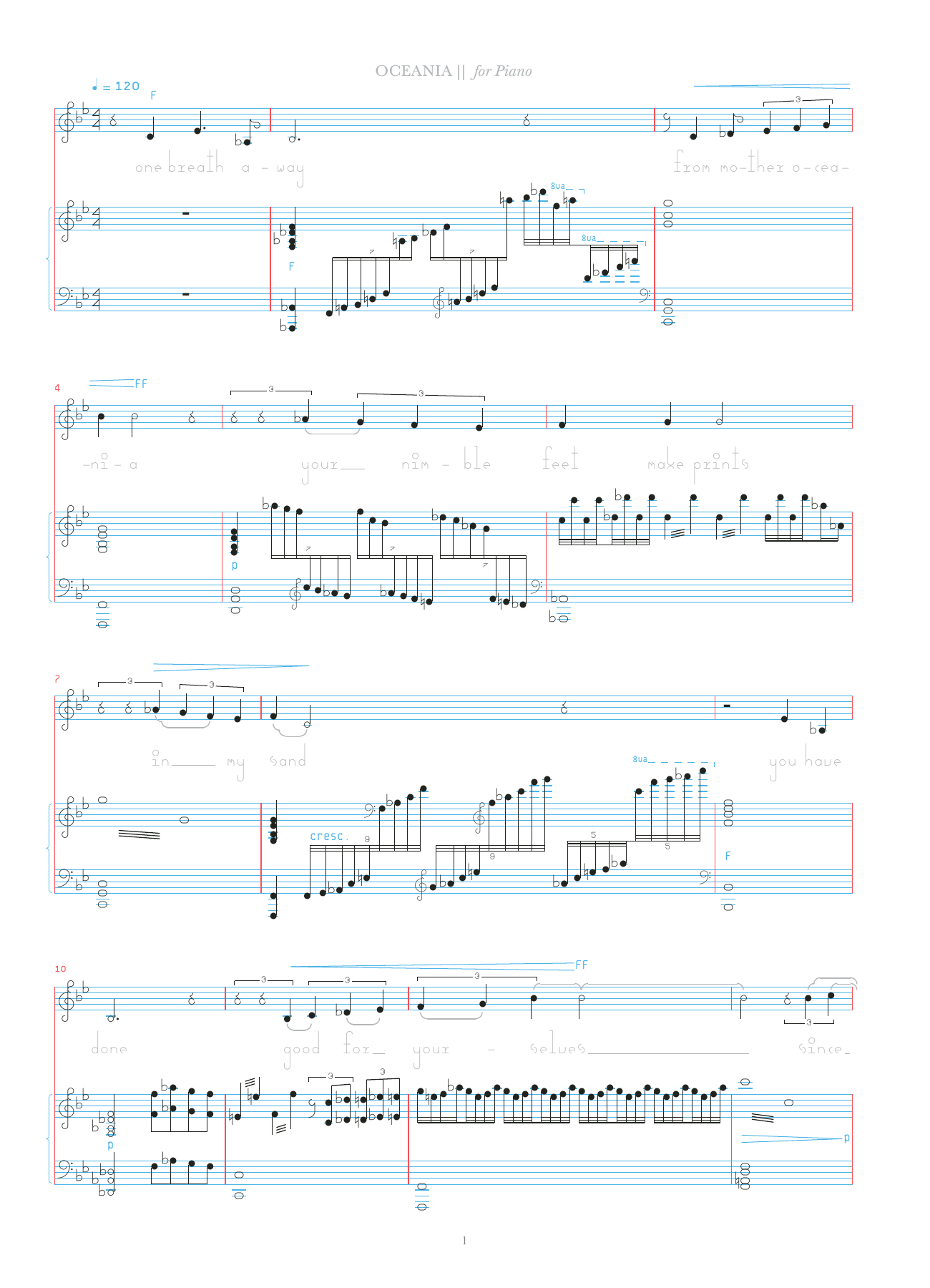 Download or print Bjork Oceania sheet music, chords and digital score arranged for Piano & Vocal. This Alternative score includes 6 page(s).