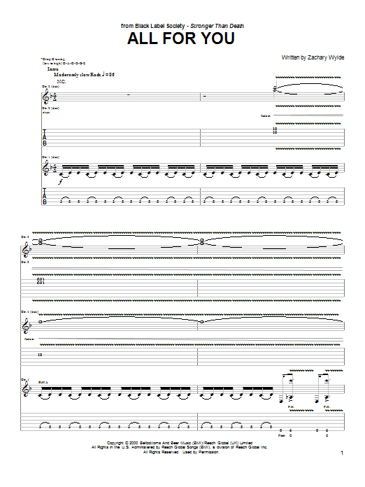 Download or print Black Label Society All For You sheet music, chords and digital score arranged for Guitar Tab. This Metal score includes 9 page(s).