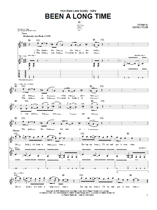 Download or print Black Label Society Been A Long Time sheet music, chords and digital score arranged for Guitar Tab. This Metal score includes 3 page(s).