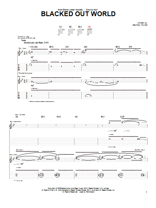 Download or print Black Label Society Blacked Out World sheet music, chords and digital score arranged for Guitar Tab. This Metal score includes 4 page(s).