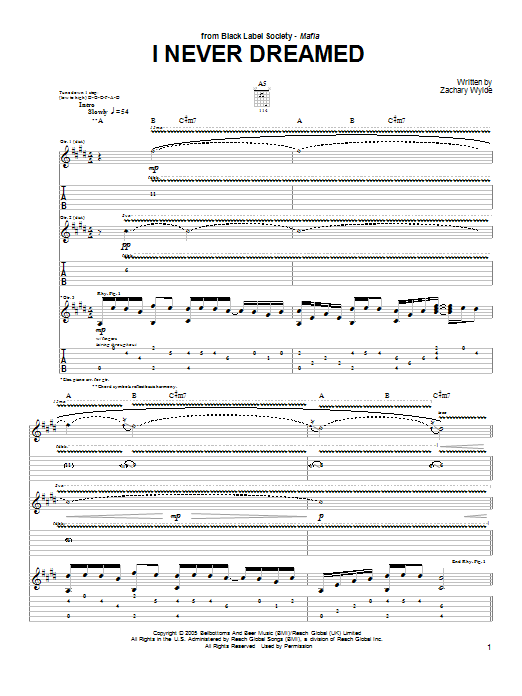 Download or print Black Label Society I Never Dreamed sheet music, chords and digital score arranged for Guitar Tab. This Metal score includes 12 page(s).