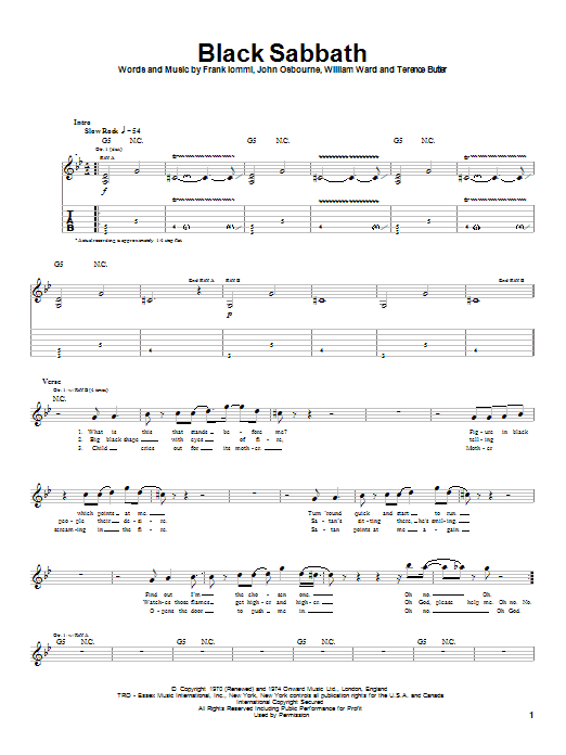 Download or print Black Sabbath Black Sabbath sheet music, chords and digital score arranged for Guitar Tab. This Metal score includes 3 page(s).