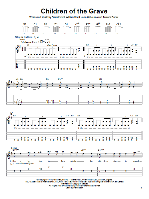 Download or print Black Sabbath Children Of The Grave sheet music, chords and digital score arranged for Bass Guitar Tab. This Metal score includes 6 page(s).