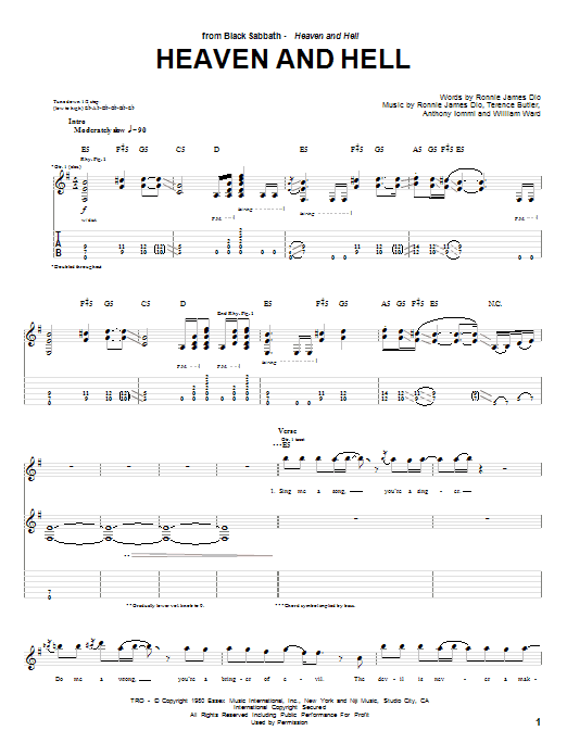 Download or print Black Sabbath Heaven And Hell sheet music, chords and digital score arranged for Piano, Vocal & Guitar Chords (Right-Hand Melody). This Metal score includes 11 page(s).