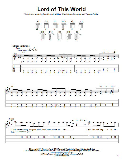 Download or print Black Sabbath Lord Of This World sheet music, chords and digital score arranged for Easy Guitar Tab. This Metal score includes 4 page(s).
