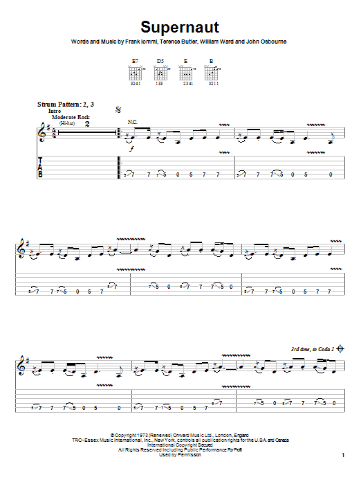 Download or print Black Sabbath Supernaut sheet music, chords and digital score arranged for Guitar Tab. This Metal score includes 6 page(s).