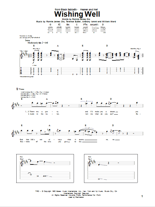 Download or print Black Sabbath Wishing Well sheet music, chords and digital score arranged for Guitar Tab. This Metal score includes 11 page(s).