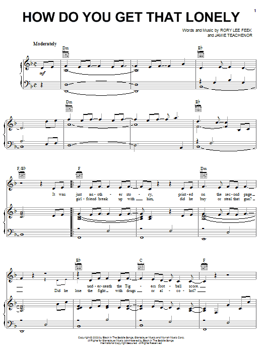 Download or print Blaine Larsen How Do You Get That Lonely sheet music, chords and digital score arranged for Piano, Vocal & Guitar Chords (Right-Hand Melody). This Country score includes 5 page(s).