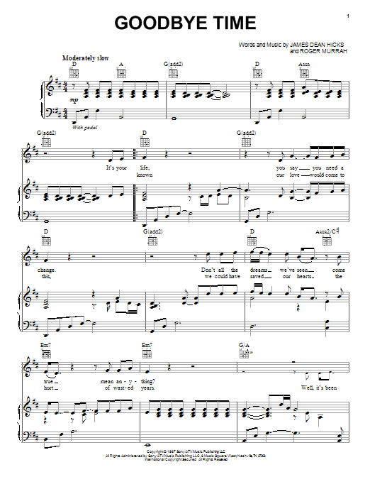Download or print Blake Shelton Goodbye Time sheet music, chords and digital score arranged for Piano, Vocal & Guitar Chords (Right-Hand Melody). This Country score includes 3 page(s).