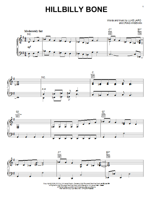 Download or print Blake Shelton Hillbilly Bone (feat. Trace Adkins) sheet music, chords and digital score arranged for Guitar Lead Sheet. This Country score includes 3 page(s).