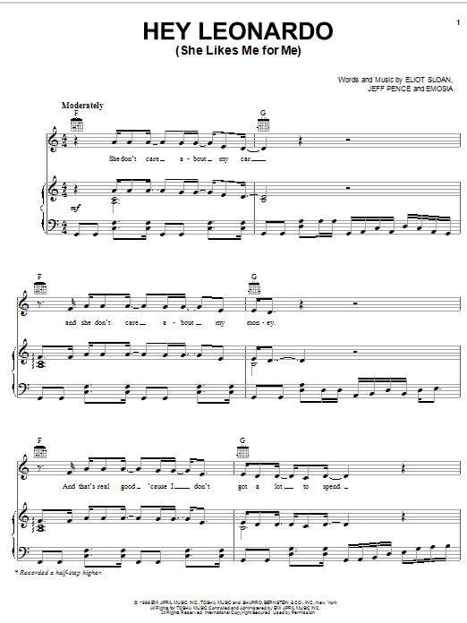 Download or print Blessid Union Of Souls Hey Leonardo (She Likes Me For Me) sheet music, chords and digital score arranged for Piano, Vocal & Guitar Chords (Right-Hand Melody). This Pop score includes 9 page(s).