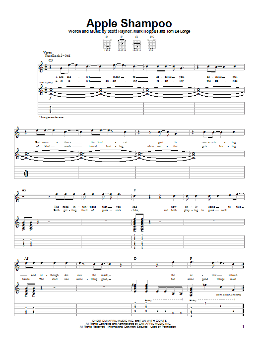 Download or print Blink-182 Apple Shampoo sheet music, chords and digital score arranged for Guitar Tab. This Alternative score includes 6 page(s).