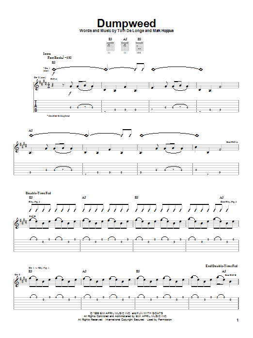 Download or print Blink-182 Dumpweed sheet music, chords and digital score arranged for Guitar Tab. This Alternative score includes 5 page(s).