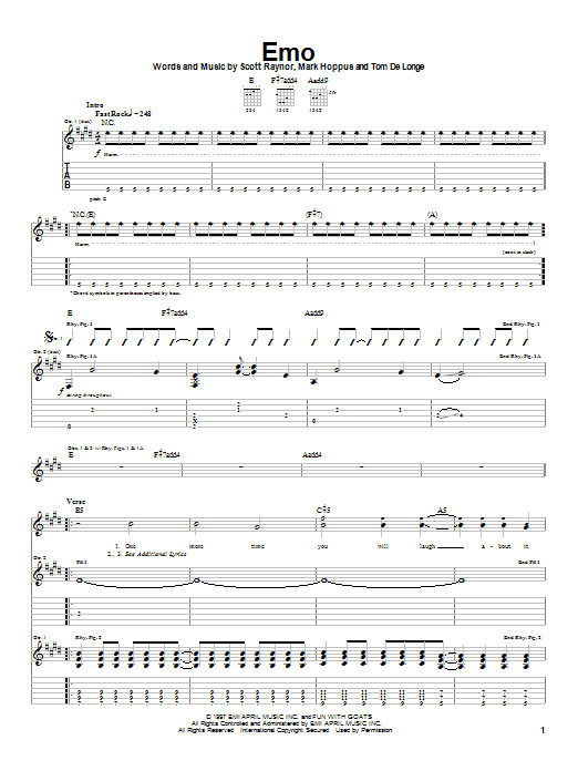 Download or print Blink-182 Emo sheet music, chords and digital score arranged for Guitar Tab. This Alternative score includes 4 page(s).