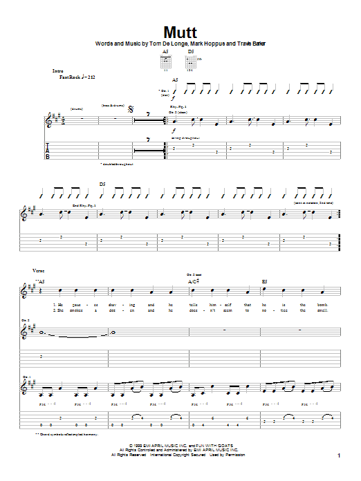 Download or print Blink-182 Mutt sheet music, chords and digital score arranged for Guitar Tab. This Alternative score includes 4 page(s).