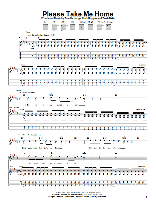 Download or print Blink-182 Please Take Me Home sheet music, chords and digital score arranged for Guitar Tab. This Alternative score includes 6 page(s).