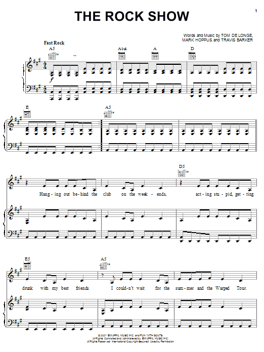 Download or print Blink-182 The Rock Show sheet music, chords and digital score arranged for Drums. This Metal score includes 5 page(s).
