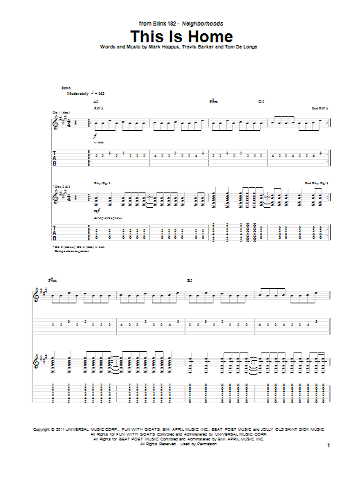 Download or print Blink-182 This Is Home sheet music, chords and digital score arranged for Guitar Tab. This Alternative score includes 5 page(s).