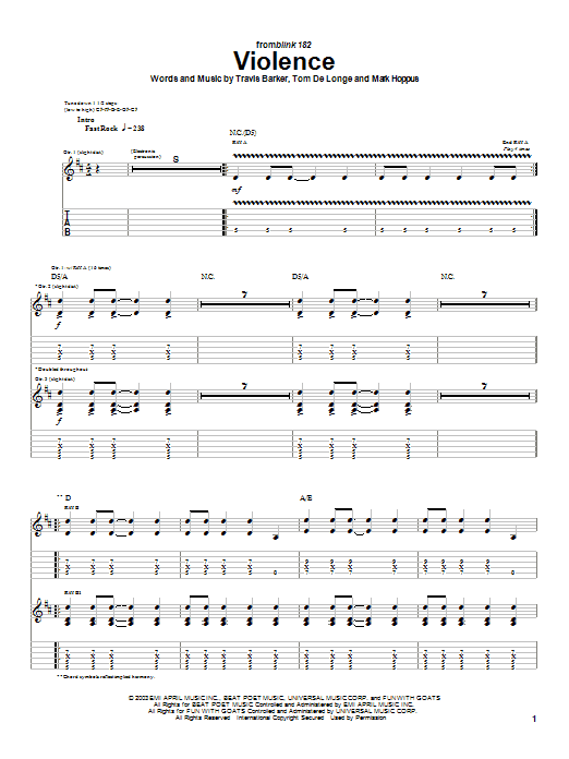 Download or print Blink-182 Violence sheet music, chords and digital score arranged for Guitar Tab. This Punk score includes 7 page(s).
