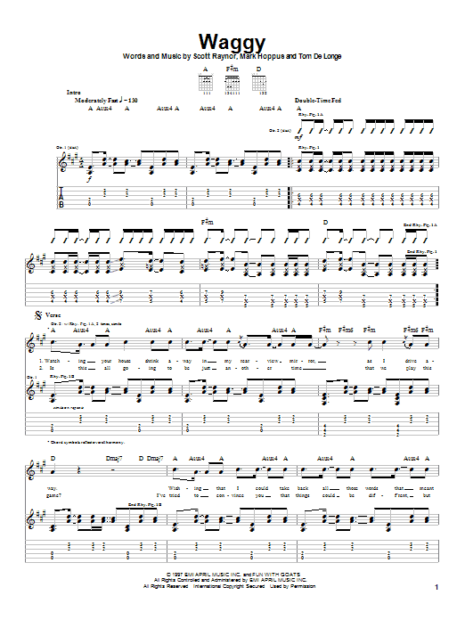 Download or print Blink-182 Waggy sheet music, chords and digital score arranged for Guitar Tab. This Alternative score includes 4 page(s).