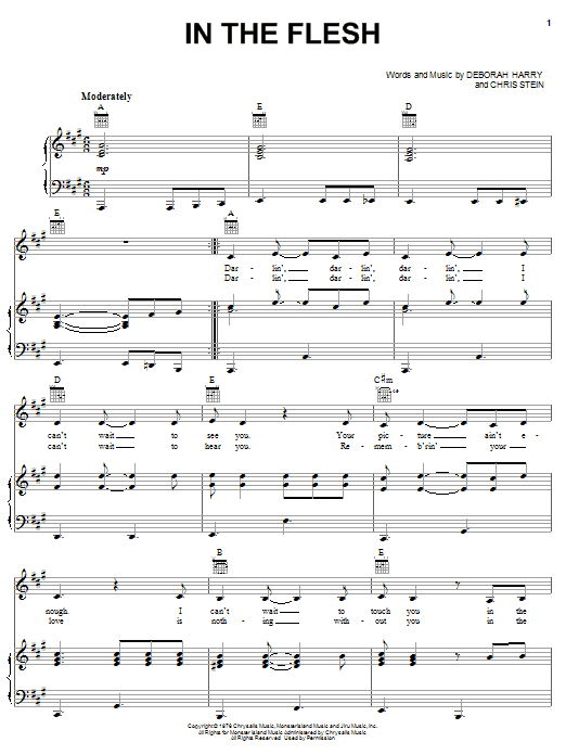 Download or print Blondie In The Flesh sheet music, chords and digital score arranged for Piano, Vocal & Guitar Chords (Right-Hand Melody). This Alternative score includes 5 page(s).