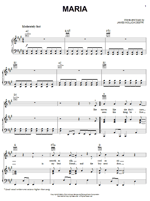 Download or print Blondie Maria sheet music, chords and digital score arranged for Piano, Vocal & Guitar Chords (Right-Hand Melody). This Alternative score includes 8 page(s).