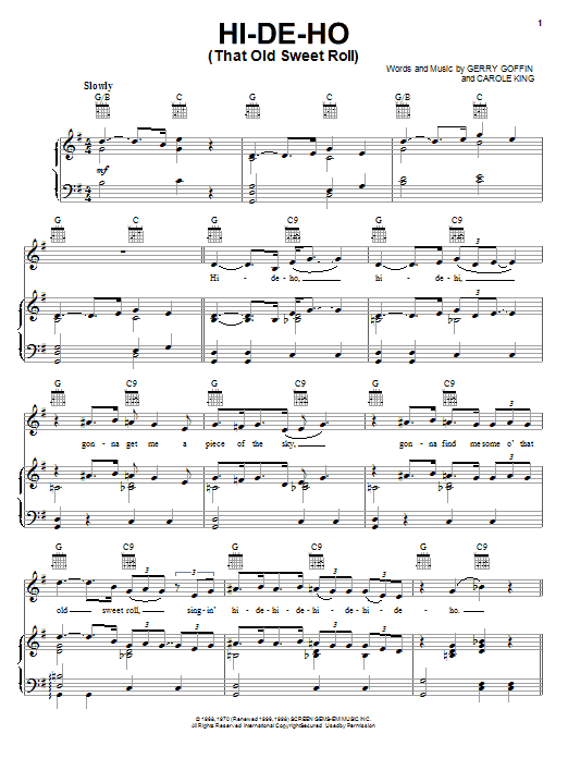 Download or print Blood, Sweat & Tears Hi-De-Ho (That Old Sweet Roll) sheet music, chords and digital score arranged for Piano, Vocal & Guitar Chords (Right-Hand Melody). This Pop score includes 3 page(s).