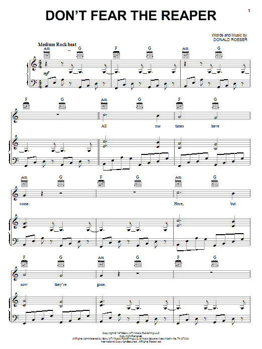Download or print Blue Oyster Cult Don't Fear The Reaper sheet music, chords and digital score arranged for Trumpet Solo. This Rock score includes 2 page(s).