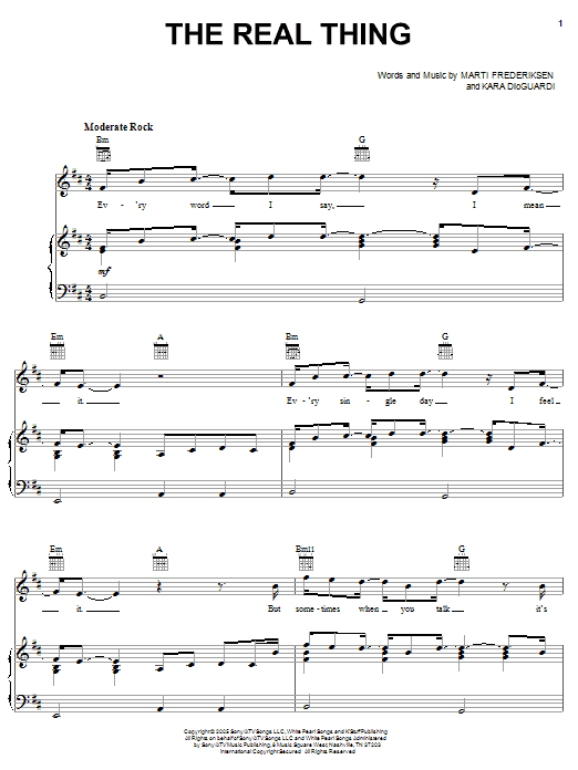 Download or print Bo Bice The Real Thing sheet music, chords and digital score arranged for Piano, Vocal & Guitar Chords (Right-Hand Melody). This Pop score includes 6 page(s).