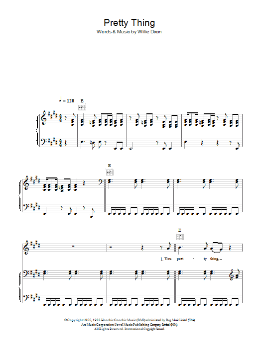 Download or print Bo Diddley Pretty Thing sheet music, chords and digital score arranged for Piano, Vocal & Guitar Chords (Right-Hand Melody). This Film/TV score includes 6 page(s).