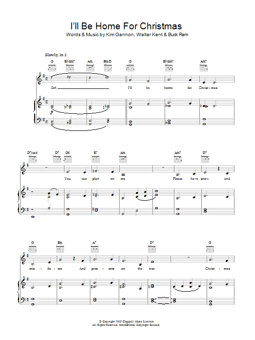 Quick facts I'll Be Home For Christmas about digital sheet music